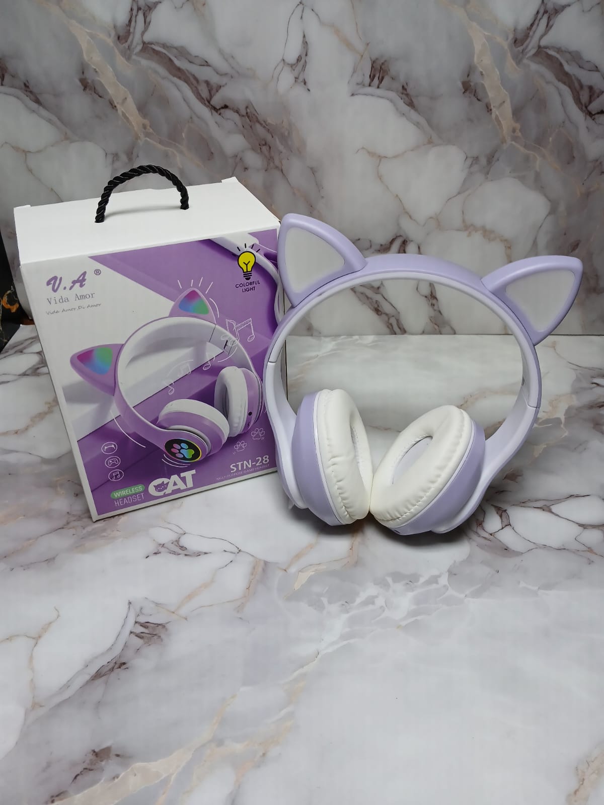 AUDIFONOS CON OREJITAS Y HUELLA MORADO