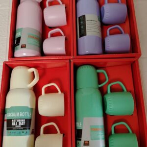 Este termo es ideal para llevarlo al trabajo, viajes, picnics… Además, el set incluye 3 tazas Plásticas que tambien funcionan como tapa. Con este Set podrás compartir tus bebidas con amigos y familiares.