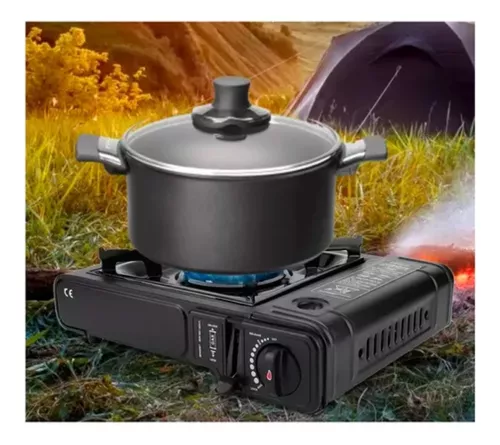 Cocinilla portátil a gas para camping con maleta. Portátil, pequeña, fuerte y duradera. Quemador de aluminio resistente a altas temperaturas, buena disipación del calor, diseño de la válvula y sin suministro de aire sin abrir la válvula para evitar fugas de gas. Confiable para acampar, cocina al aire libre, (viene con Estuche de transporte/completo con manual de usuario).Diseño compacto y ligero que te permite llevarla para todas partes