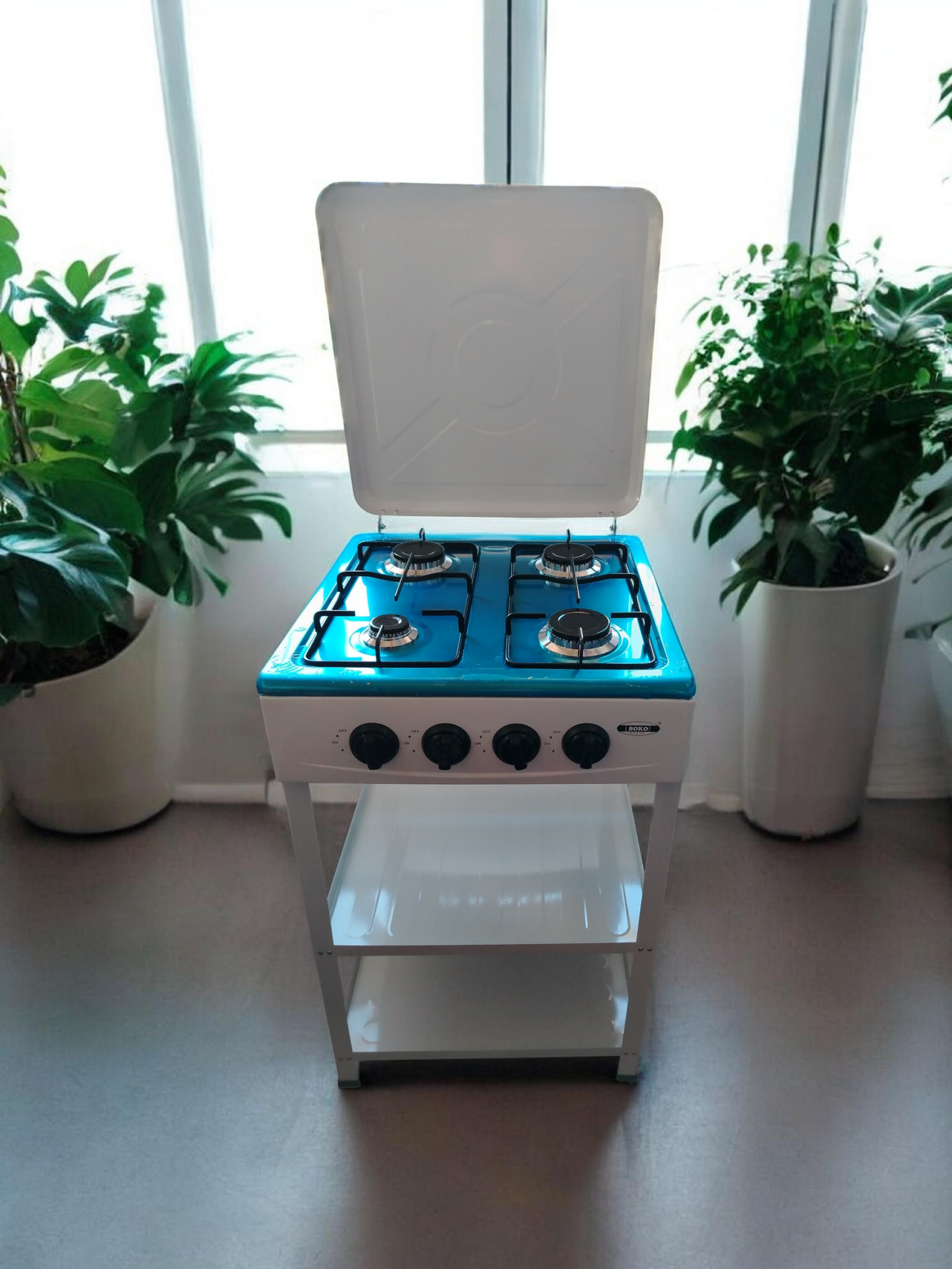 COCINA ENCIMERA 4 HORNILLAS CON ESTANTE BLANCA