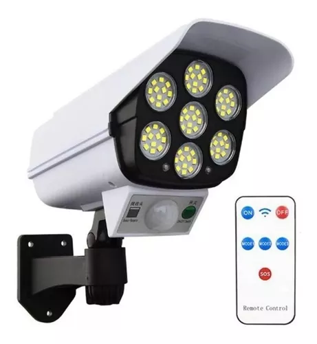 Este reflector solar se asemeja a una cámara de seguridad, es perfecta para alejar a cualquier intruso que quiera ingresar a tu hogar, se puede instalar en varios lugares como pasillo, techo o simplemente en la parte trasera de tu hogar, su panel solar te brinda ponerla a cargar sin necesidad de gastar energía de tu hogar, y su batería de litio después que está cargada puede durar hasta 7 días de iluminación, su sensor de movimiento puede prender rápidamente la lámpara y otorgarte un espacio iluminado.