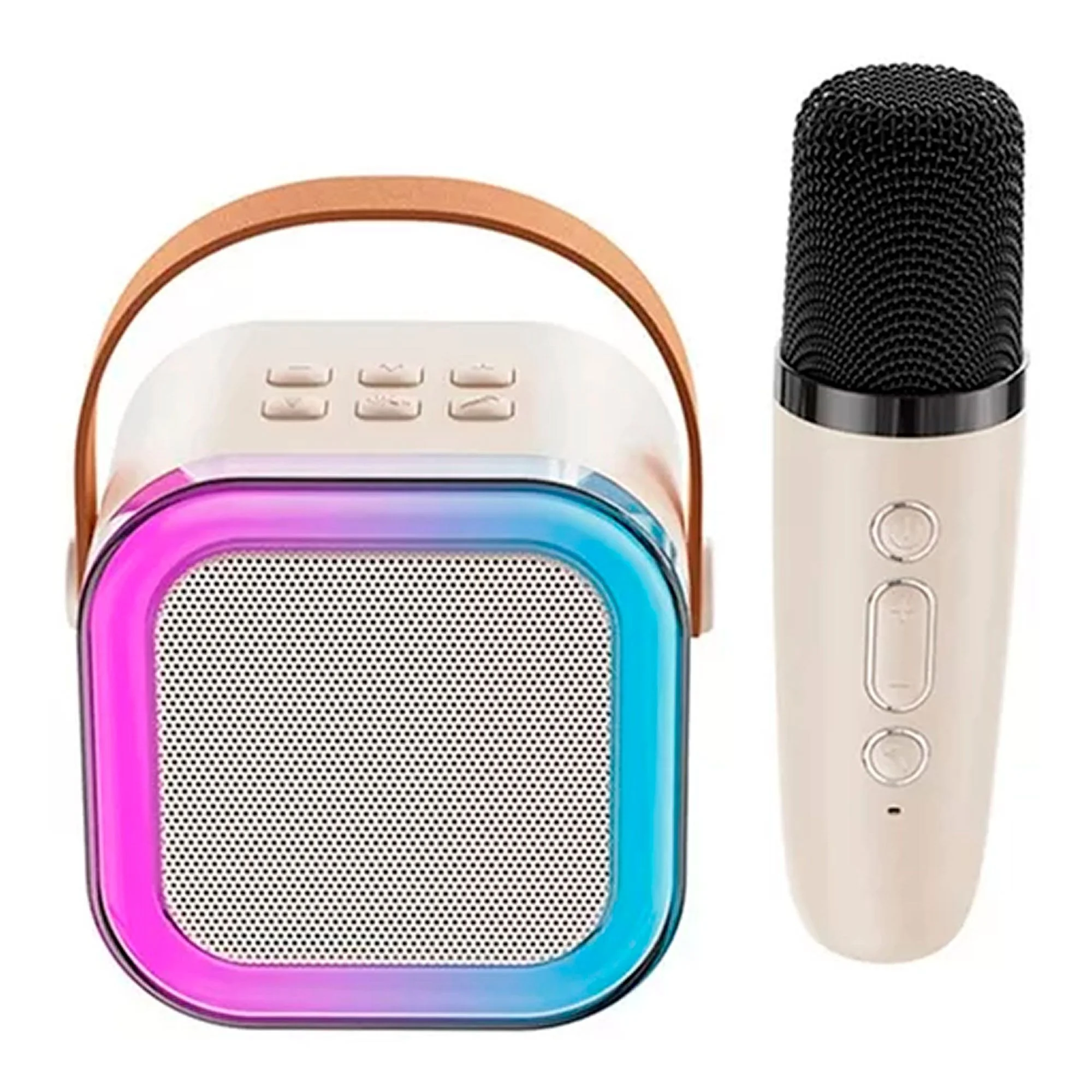 Mini máquina de karaoke, aunque de tamaño pequeño, potente en configuración, equipada con altavoz de alta definición DSP + amplificador de graves independiente, el sonido es fuerte sin distorsión, impactante y potente, reducción de ruido inteligente, restaura el sonido más auténtico