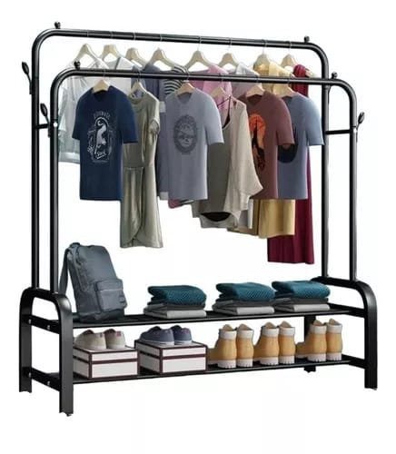 El diseño de doble varillas puede acomodar el doble de ropa para satisfacer las necesidades de su vida. El estante inferior también puede contener múltiples pares de zapatos.