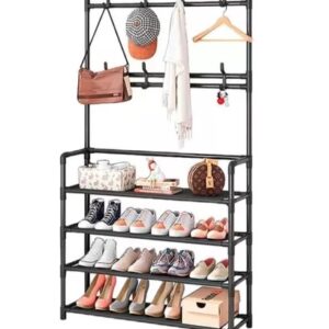 Zapatero Perchero Metal Colgador de Entrada Estante Organizador 2 en 1