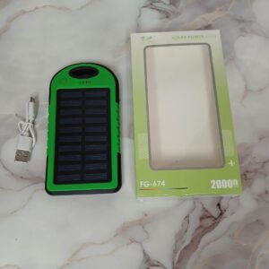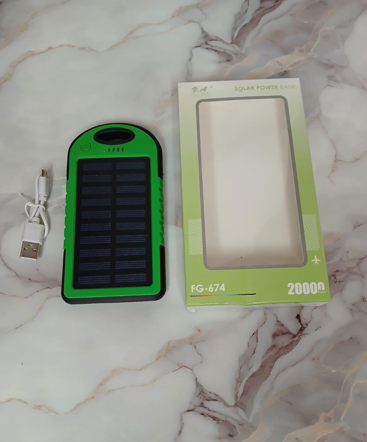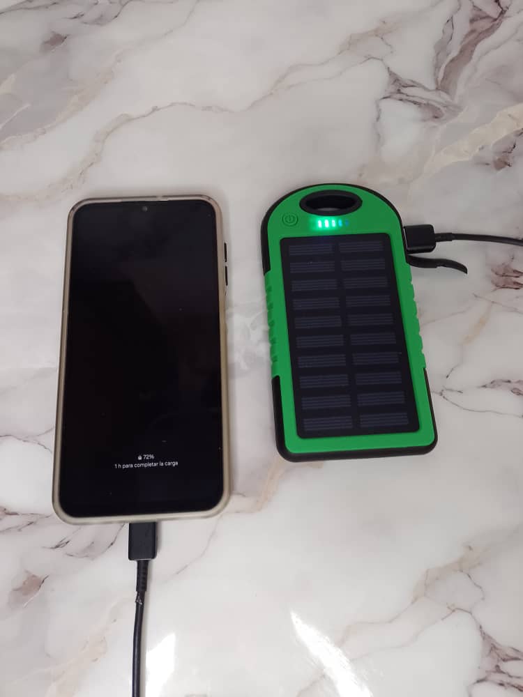 | Con panel solar, Entrada: DC 5V=1A, 2 Salidas para conexión USB, Linterna Led con 3 modos de luz: Alto, Bajo e Intermitente |