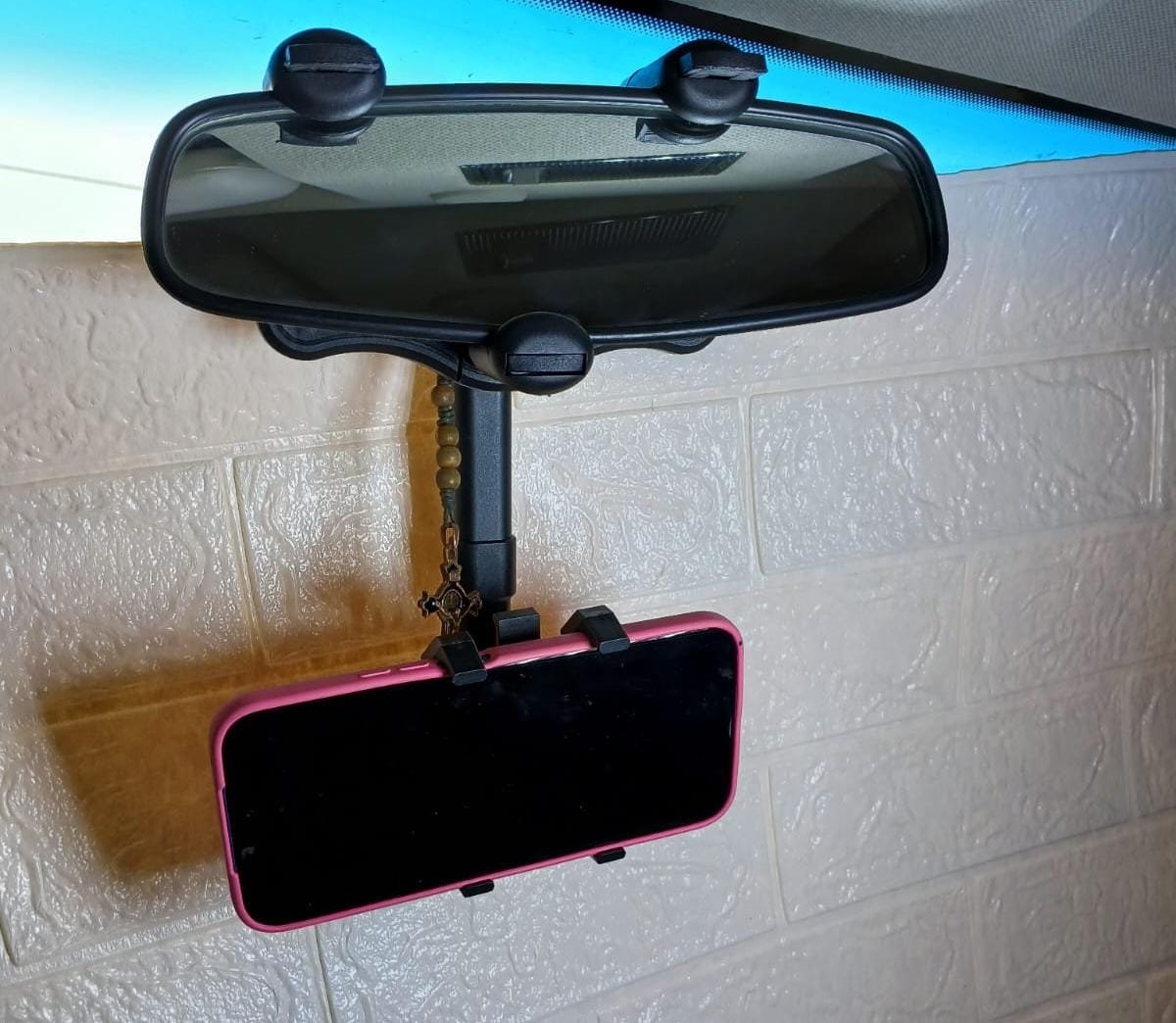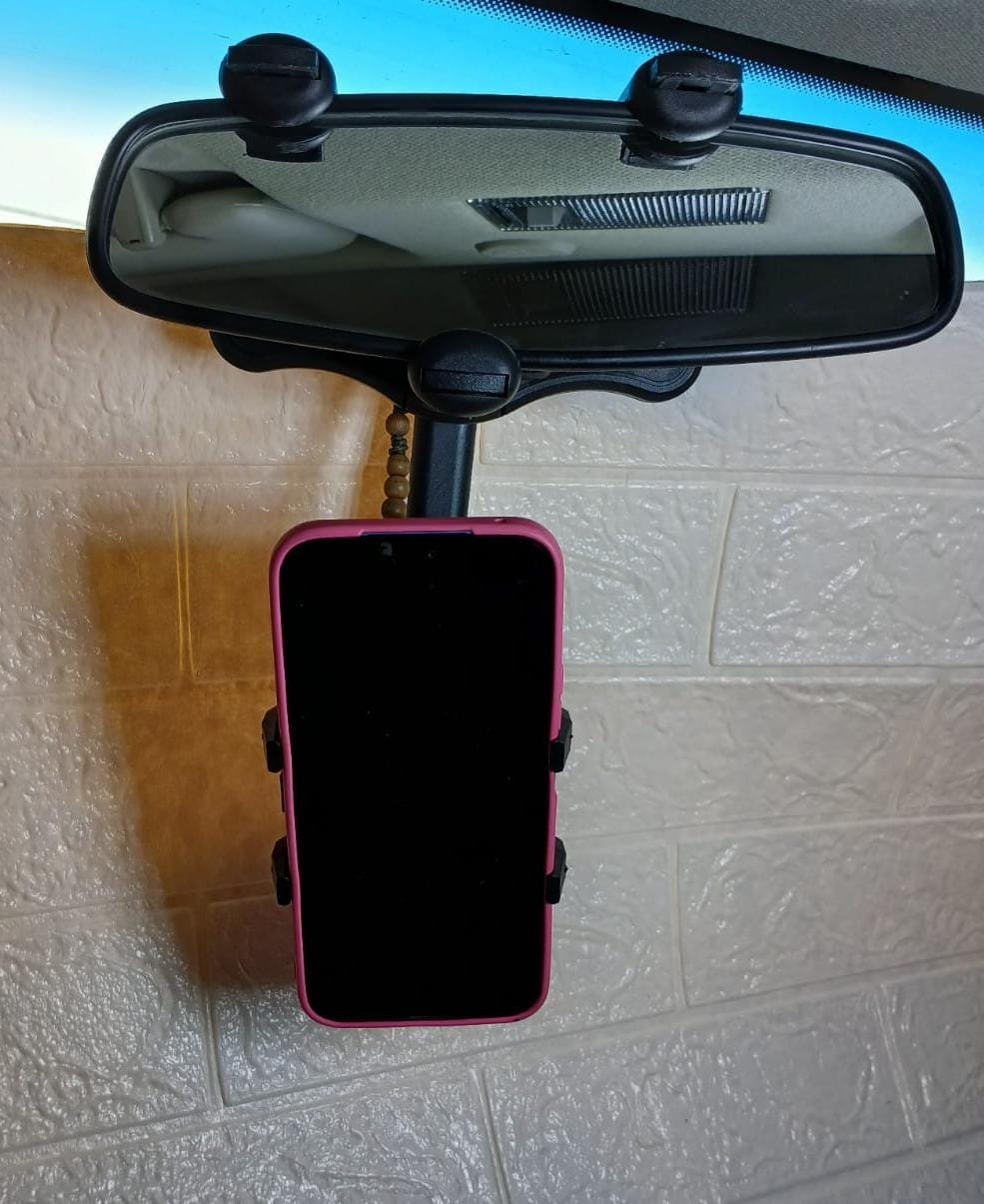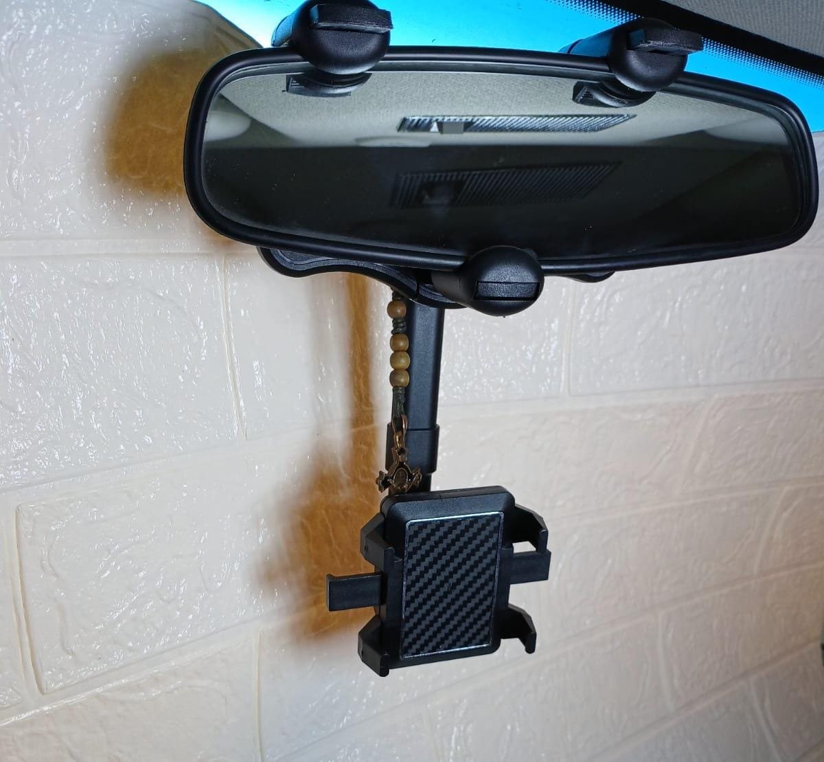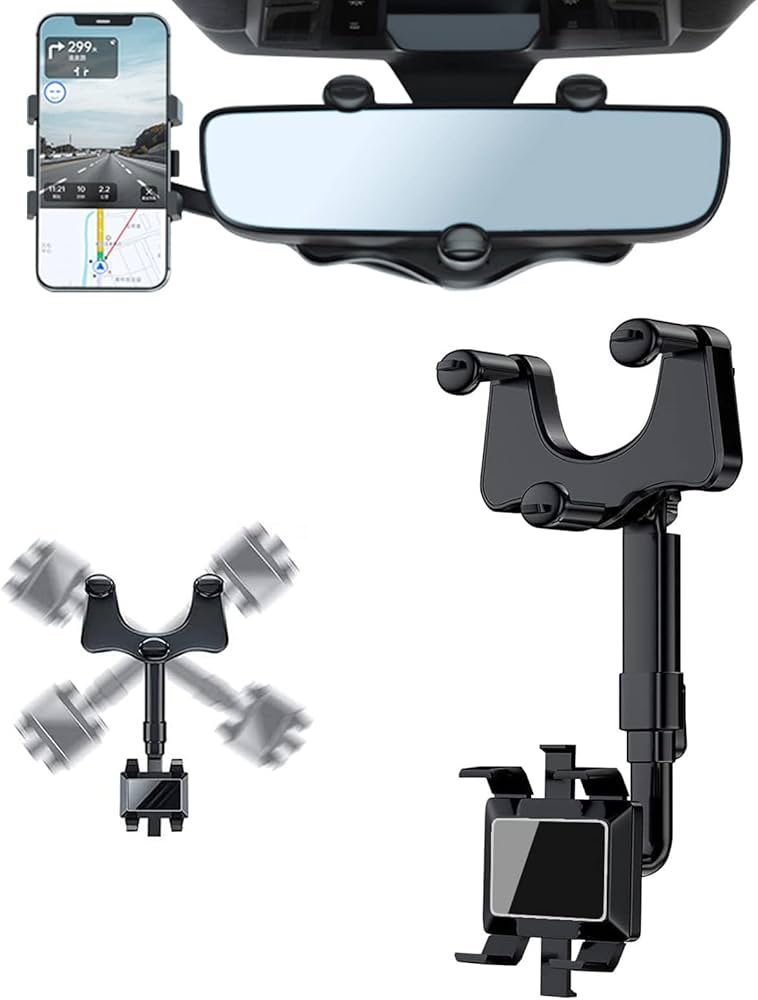 Material de alta calidad: el soporte para teléfono con espejo retrovisor está hecho de material ABS, el diseño es redondeado, liviano y fuerte, duradero y sin distorsiones, manteniendo la calidad