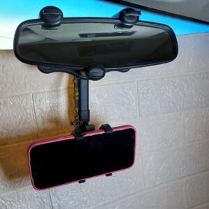 Fácil de instalar y quitar: sujete el soporte del teléfono del espejo del automóvil al espejo retrovisor y gire el anillo de bloqueo de la manija El botón de liberación rápida y el brazo de clip ajustable le facilitan ponerse y quitarse el teléfono con una sola mano